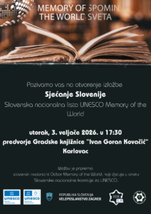 Pozivamo vas na otvorenje eminentne gostujuće baštinske izložbe Sjećanje Slovenije, UNESCO Memory of the World,