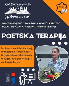 Pozivamo vas na 4. radionicu poetske terapije u sklopu Kluba ljubitelja poezije „Stihom u srce“