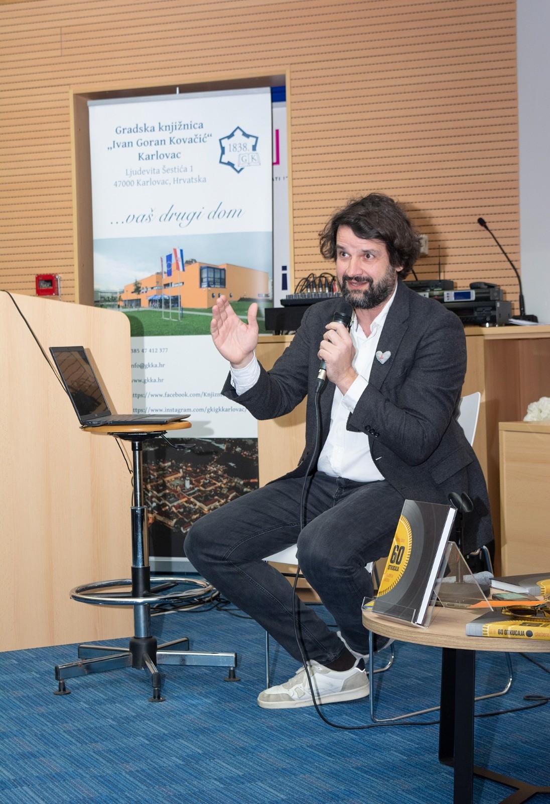 Povodom 61. rođendana Odjela audiovizualne građe, u Ilirskoj dvorani gostovao je Boris Jokić koji je predstavio knjigu 60 otkucaja – glazbena lektira. Odjel audiovizualne građe osnovan je 1965. godine i ubraja se u najstarije takve odjele u hrvatskim knjižnicama. U više od 60 godina postojanja i djelovanja mijenjao je svoj naziv (Diskoteka → Glazbeni odjel → Odjel audiovizualne građe od 2015.) u skladu s tehnološkim razvojem, obogaćujući fond novim medijima i novim vrstama neknjižne građe te proširivao svoju djelatnost brojnim sadržajima i aktivnostima. U prijateljskoj i neformalnoj atmosferi uz predstavljanje glazbe iz knjige predavanje je oduševilo brojnu karlovačku publiku. U popodnevnom terminu publika su bili karlovački srednjoškolci koji su sa zanimanjem i brojnim pitanjima popratili predavanje. Može li glazba promijeniti svijet? Može li lektira izgledati i zvučati drugačije – suvremeno, hrabro, emocionalno, vizualno? Nova knjiga “60 otkucaja – glazbena lektira” autora Borisa Jokića, otvara prostor upravo za takva pitanja – i donosi odgovore kroz spoj 60 odabranih pjesama, glazbenih referenci, osobnih priča autora i jedinstvenih umjetničkih radova mladih talenata. “Osnovna poruka koju knjiga pruža je da naše odbrojene dane, te otkucaje koje imamo, koliko god da ih ima, treba živjeti na način vrijedan života. Svijet suvremene glazbe i one opisane u ’60 otkucaja’ govori o tome da bez obzira na svo crnilo i sivilo koje nas okružuju, ovdje u Hrvatskoj i u cijelom svijetu postoji nada, snaga, bunt, mudrost, vjera u ljude i udarci u muda okrutnim moćnicima…”, poručuje Boris. Široj javnosti poznat kao voditelj Cjelovite kurikularne reforme te kao stručnjak koji u središte obrazovanja postavlja dijete i njegovu cjelovitost, Boris Jokić je znanstvenik, doktor psihologije, radijski voditelj i zaljubljenik u glazbu. Prije nekoliko godina, Jokić je donio 60 pažljivo odabranih pjesama pred učenike Škole primijenjene umjetnosti i dizajna u Zagrebu, a oni su na te pjesme odgovorili – slikom. Svaki učenik, vođen mentorom, dobio je jednu pjesmu i zadatak da se likovno izrazi. Bio je to njihov prvi i jedini susret s autorom, ali i trenutak koji je stvorio ovu knjigu. Rezultat je jedinstveno, snažno i emotivno djelo koje povezuje znanost, umjetnost i mladost. O inspiraciji za ovu knjigu, Boris Jokić otkriva: “Nekoliko je poticaja za knjigu ’60 otkucaja’. Prvi je taj što sam od djetinjstva lud za glazbom, drugi je taj da hrvatsko obrazovanje mladim ljudima namjerno ne približava suvremenost i suvremenu glazbu i sva bogatstva koja ona nudi. A treća je stvar da vjerujem u mlade ljude u Hrvatskoj i u njihovu kreativnost.”