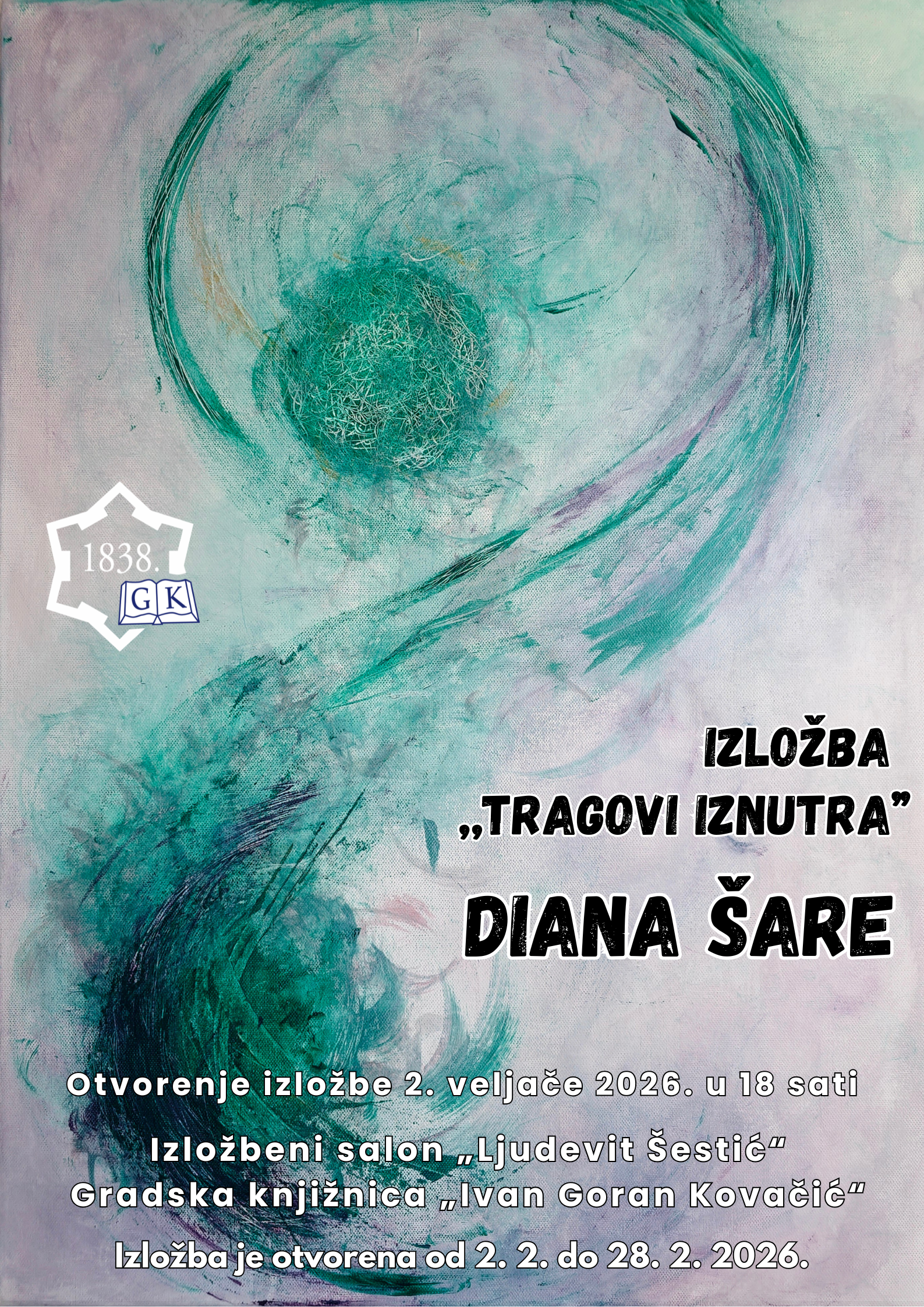 U ponedjeljak 2. veljače u 18 sati u Izložbenom salonu „Ljudevit Šestić“ otvaramo autorsku izložbu “Tragovi iznutra” Diane Šare.