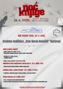 Gradska knjižnica „Ivan Goran Kovačić“ i ove je godine pripremila bogat program za sve uzraste naših korisnika. Noć knjige održat će se u srijedu, 22. travnja, i u četvrtak, 23. travnja 2026. godine.