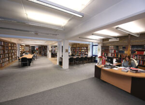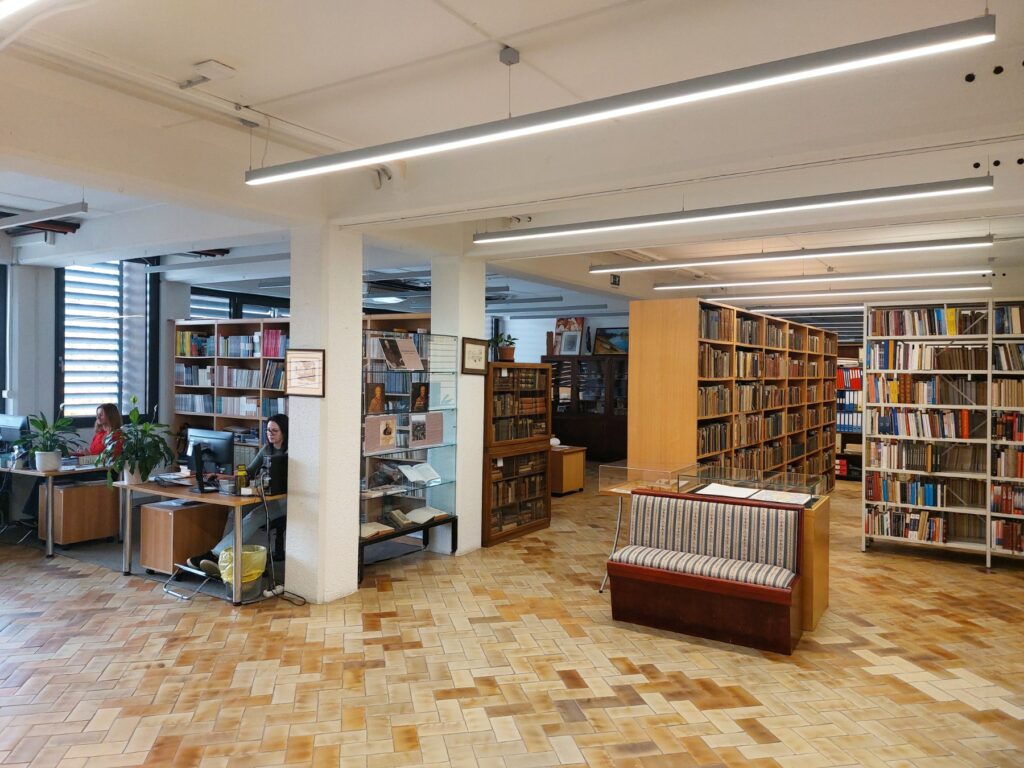 Informativno-posudeni odjel Dječji odjel Studijski odjel Zavičajni odjel Odjel audiovizualne građe Središnja knjižnica Slovenaca u Republici Hrvatskoj Knjižnica za mlade Knjižnična stanica Švarča Služba pokretne knjižnice Županijska matična razvojna služba Služba nabave, obrade i zaštite knjižnične građe Knjigovežnica Služba odnosa s javnošću te koordinacije programa i usluga Zelena knjižnica American Corner Karlovac Mihalićeva kuća književnosti