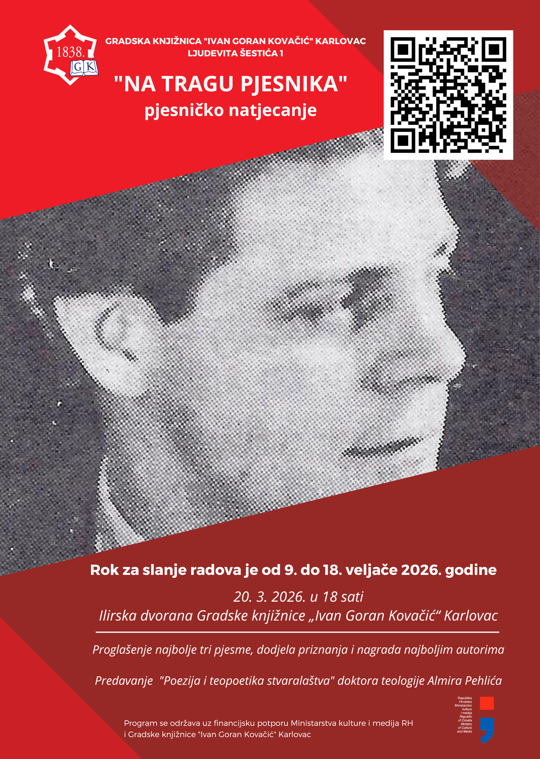 Gradska knjižnica „Ivan Goran Kovačić“ Karlovac raspisuje pjesnički natječaj „Na tragu pjesnika“.