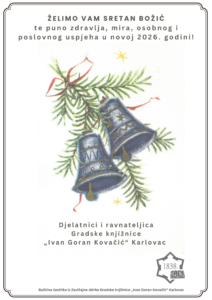 Gradska knjižnica Ivan Goran Kovačić 24.12. i 31.12. 2025., radi za korisnike od 7.30 do 14.00 sati, a Knjižnica za mlade i Mihalićeva kuća književnosti ne rade 24.12., dok  31.12. rade od 8.00 do 14.00 sati. Svim korisnicima želimo sretne i blagoslovljene blagdane i uspješnu 2026. godinu.